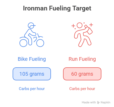This athlete sets alarms. They fuel early. They fuel often. They take in carbs even when they don’t feel hungry. They hit 70 to 80 grams per hour on the bike and 50 to 60 grams per hour on the run. The result is steady energy and controlled pacing late in the race.